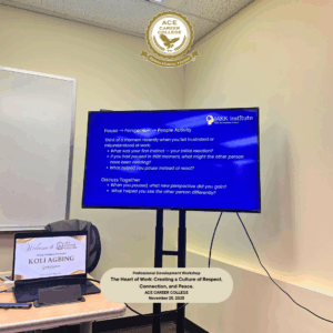 The session, “The Heart of Work – Creating a Culture of Respect, Connection, and Peace,” brought the ACE team together for learning, reflection, and stronger collaboration.
